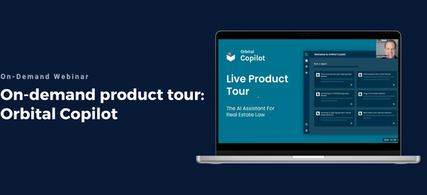Watch this 30 minute on-demand product tour to see how Orbital Copilot, purpose built real estate AI designed by former lawyers, is being used by leading law firms to accelerate diligence and improve work quality.